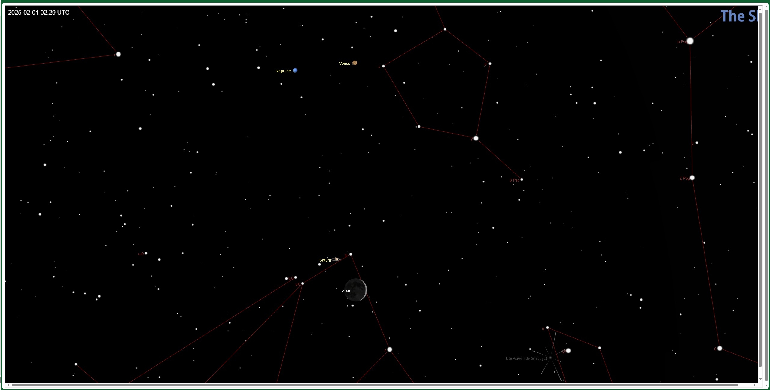 Not seen, but also there, is Neptune, just to the left of Venus. I might be able to pick it out as a pinpoint with my 8″ telescope (Venus and Saturn will show visible disks, Saturn’s rings would be clearly visible) and it might show some blue color, but the iPhone doesn’t have a chance.