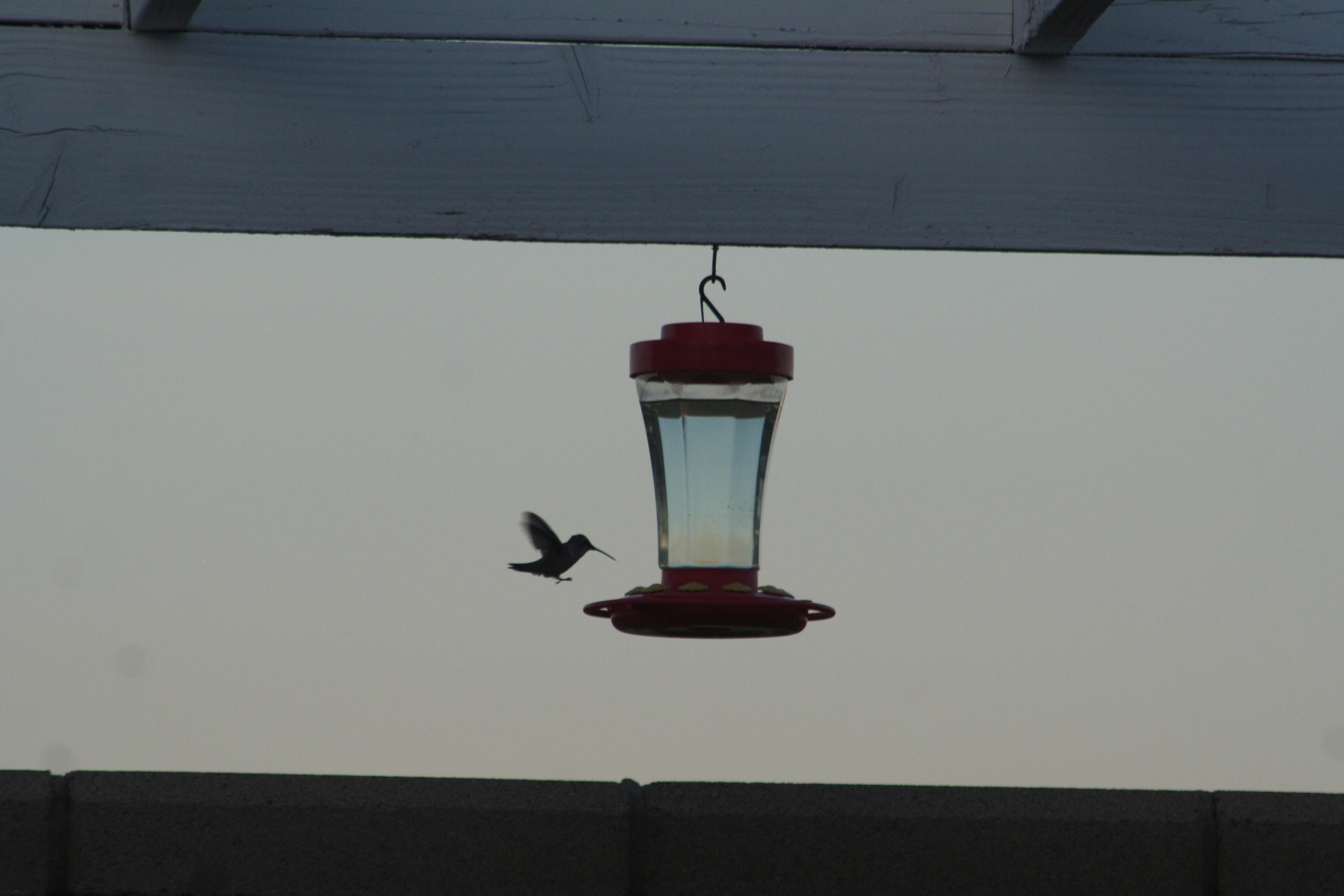 The other thing you might notice is that the second hummingbird feeder is up. Hummer2 is active and getting traffic, sometimes at the same time as Hummer1. The most I’ve ever seen is four hummers out there flitting about and feeding at once, but I’m hoping that will grow.