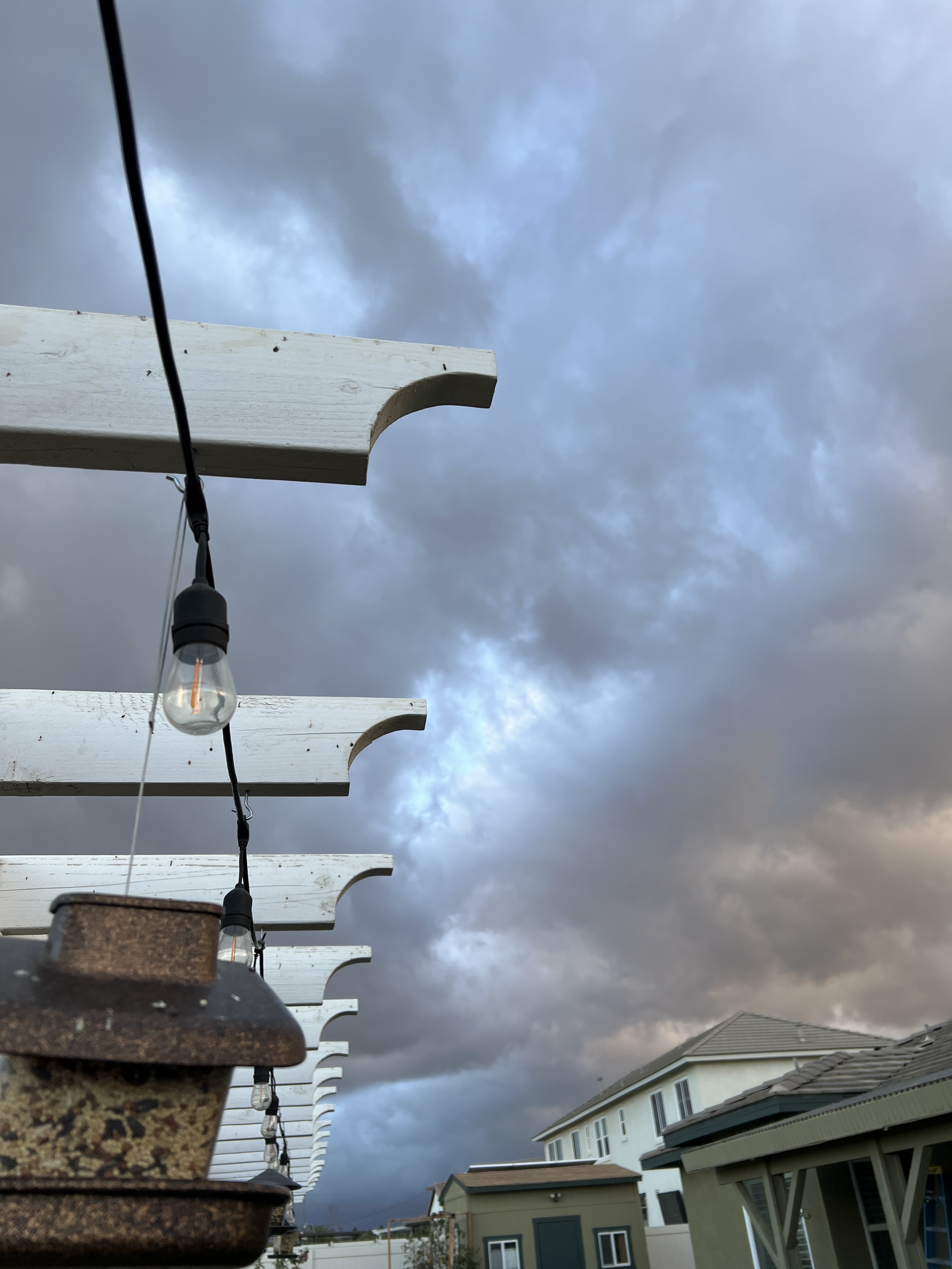 It’s one thing to “know” that the temperature & weather swings are more extreme in the desert – it’s quite another to live here for a while and feel it. While the summer was fairly mild (I think we only had a handful of days that got into triple digits instead of dozens and dozens), now it’s autumn and we’re getting that large and unusually cold storm moving in. The high temperature today was only 58ºF today, and as we speak it’s only 48ºF outside. Tomorrow’s high is only supposed to be about 51ºF, with an inch or more of rain.