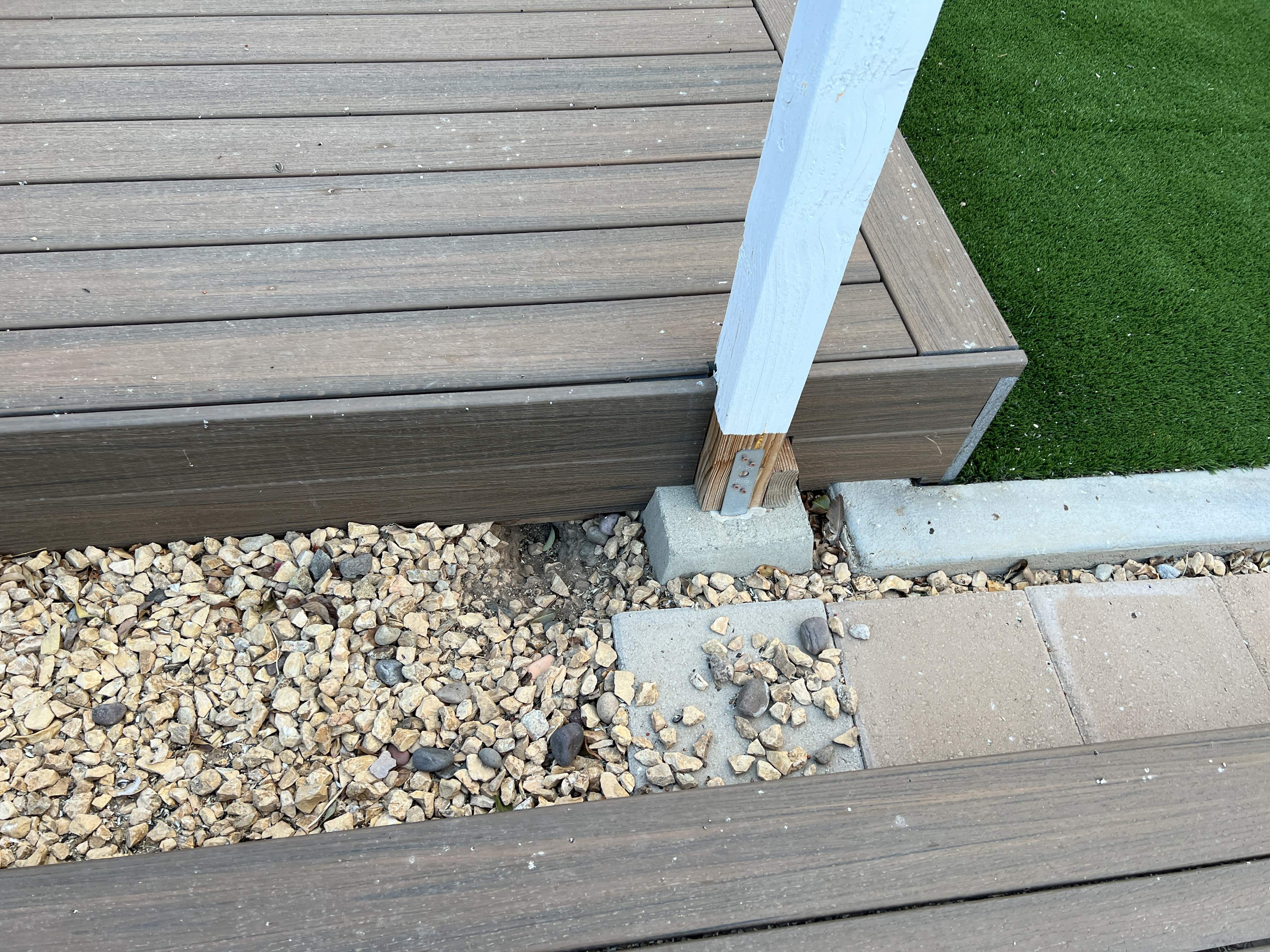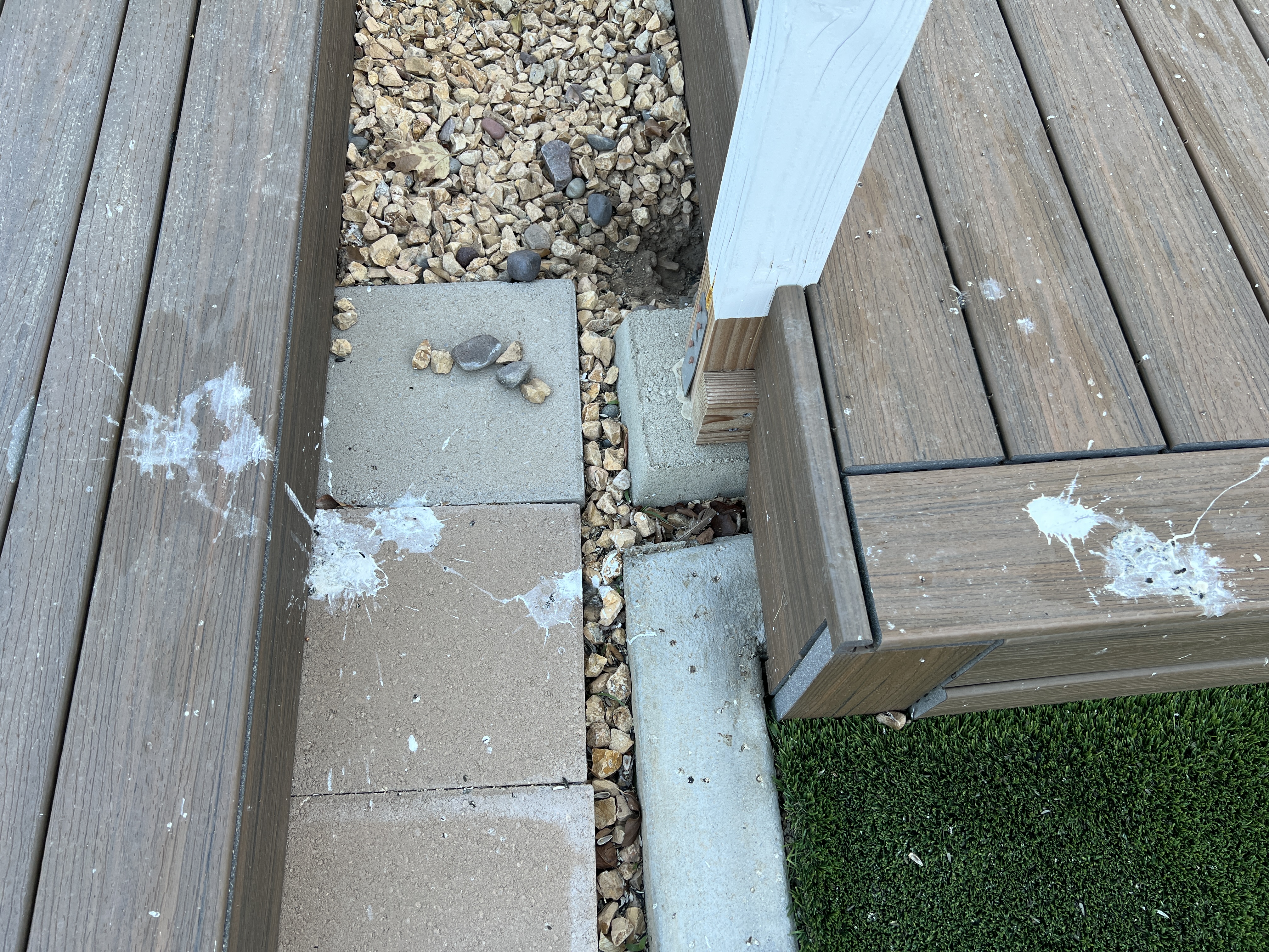 I noticed this tunnel under the side of the pergola decking a couple weeks ago and I’ve filled the rocks back in twice, only to have the hole open up again in a day or so. Behind the back yard shed there’s a stack of leftover bricks and paving stones – I guess they’re the next weapon in the fight. Let’s see if the little bugger is strong enough to move them.