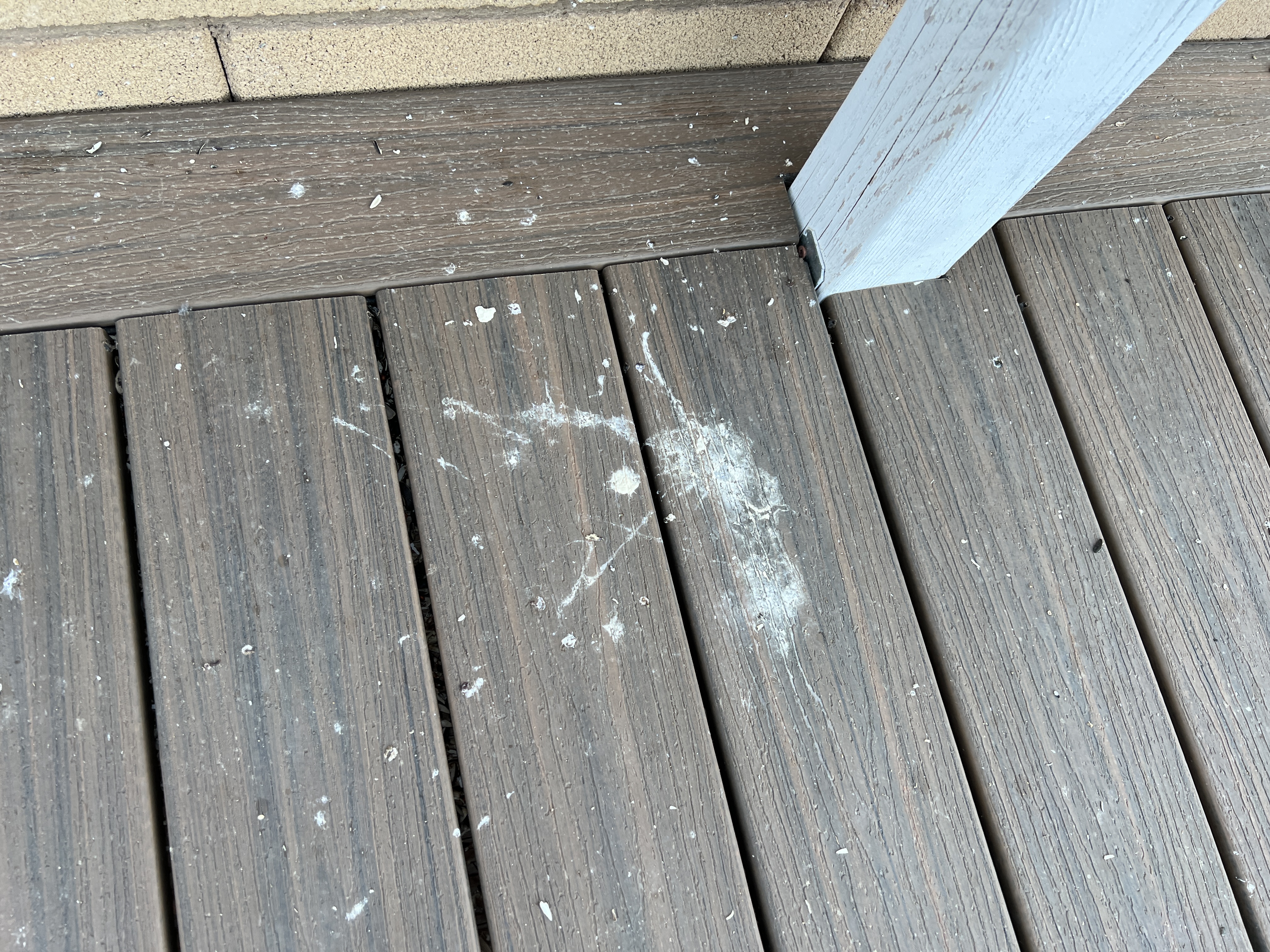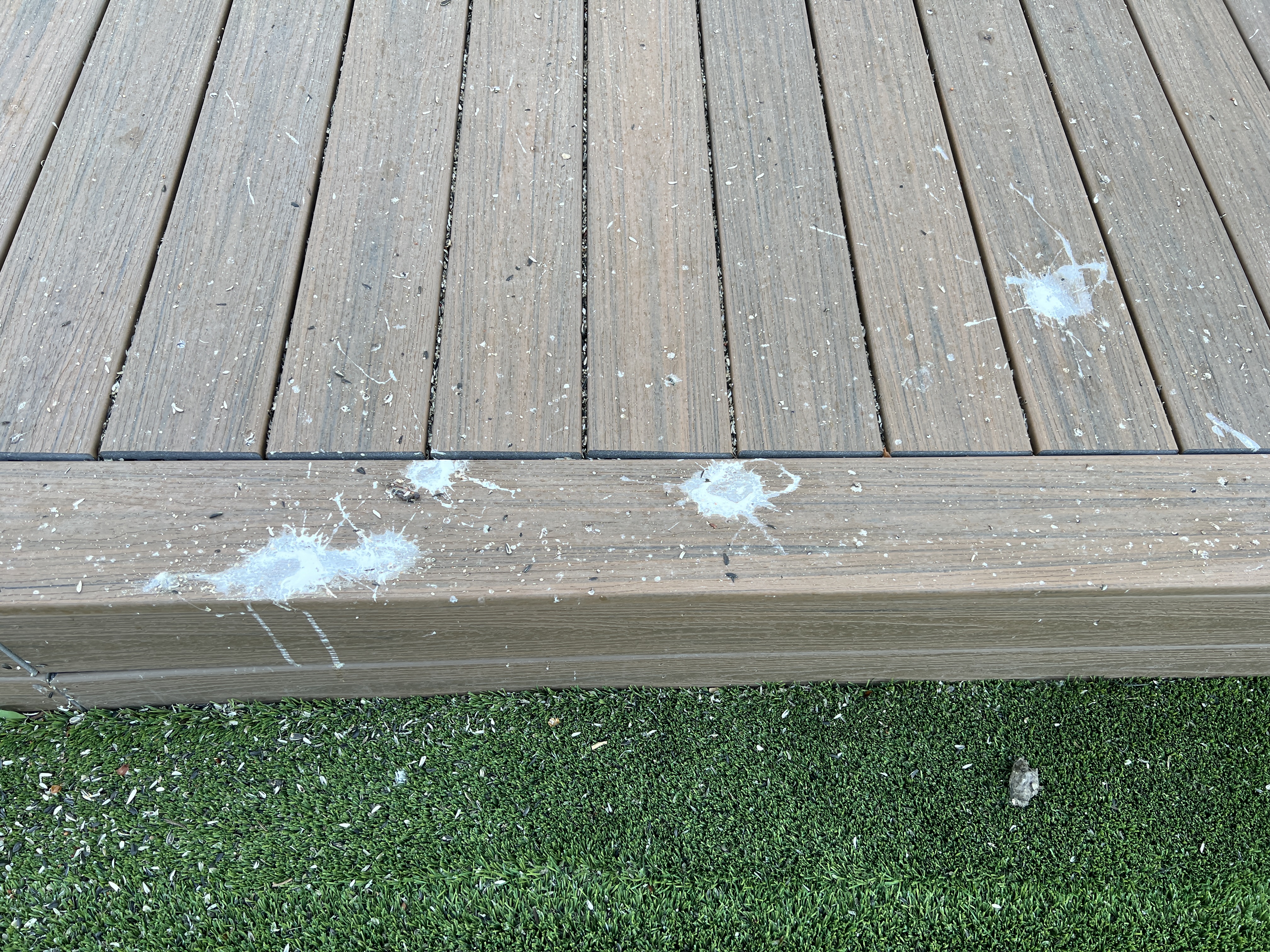 In addition to the squirrels (or whatever they are) burrowing under the pergola, and the flocks of wrens, finches, hummingbirds, and scrub jays all feeding at the feeders hanging from the top, we also have some bigger raptors that regularly roost on top of the pergola, particularly at night.