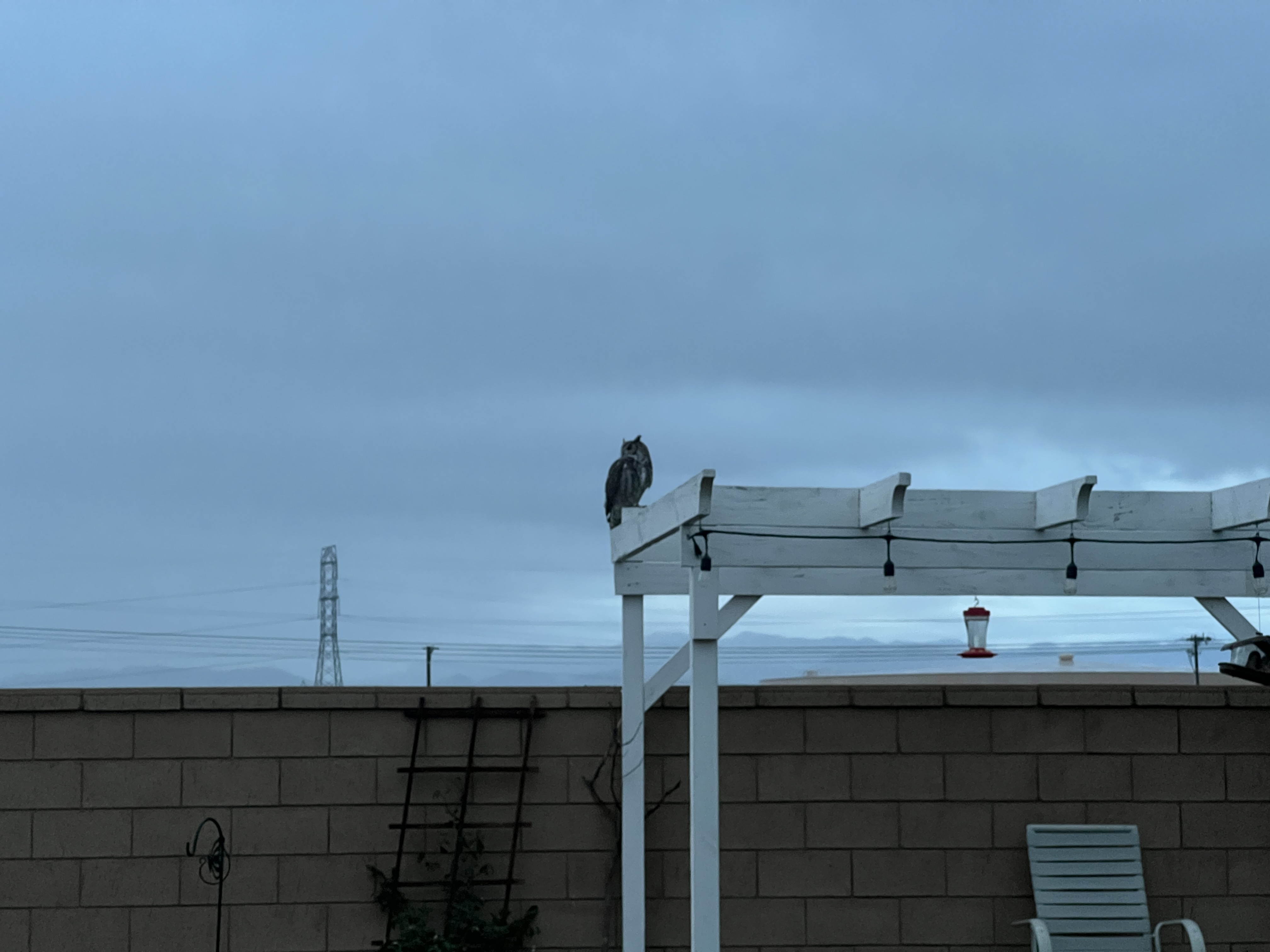As mentioned, I’ve seen an owl out on the cinder block wall in the back yard and on the pergola a couple of times, always when it’s dark or just getting there, but I’ve never gotten any pictures.