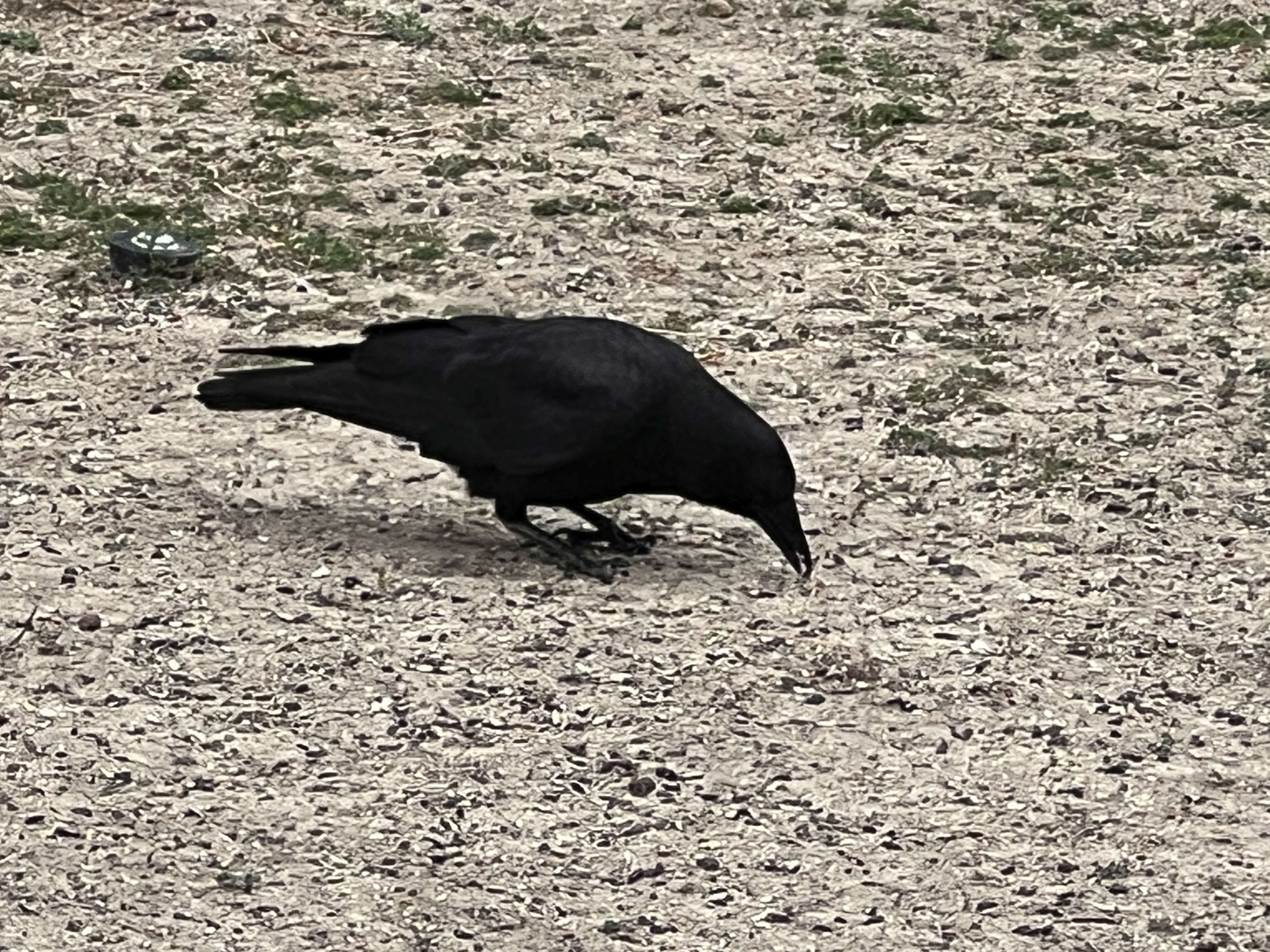No additional sighting of the owl there was out there at sunset a few days ago, and very few finches are around. A bunch of crows, some pigeons, but no hawks at all, which surprises me. We did see a huge turkey vulture circling a few hundred feet up, but it never came down closer.