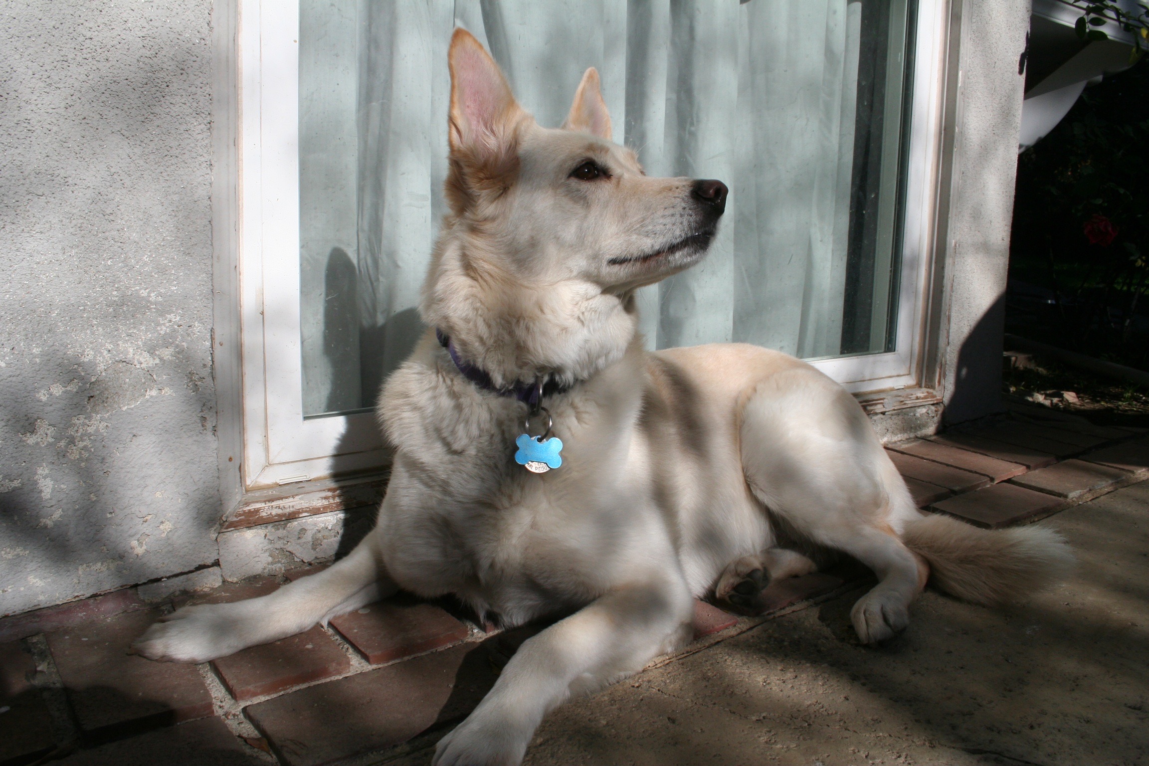 There’s a 6′ chain link fence between our yards, covered in vines (I’m sure you can catch glimpses of it in any one of hundreds of photos from the past six years) so I don’t see Coco well and she doesn’t see me, but that doesn’t matter. She’s sound activated. Any sound from me and she is sounding the alarm.