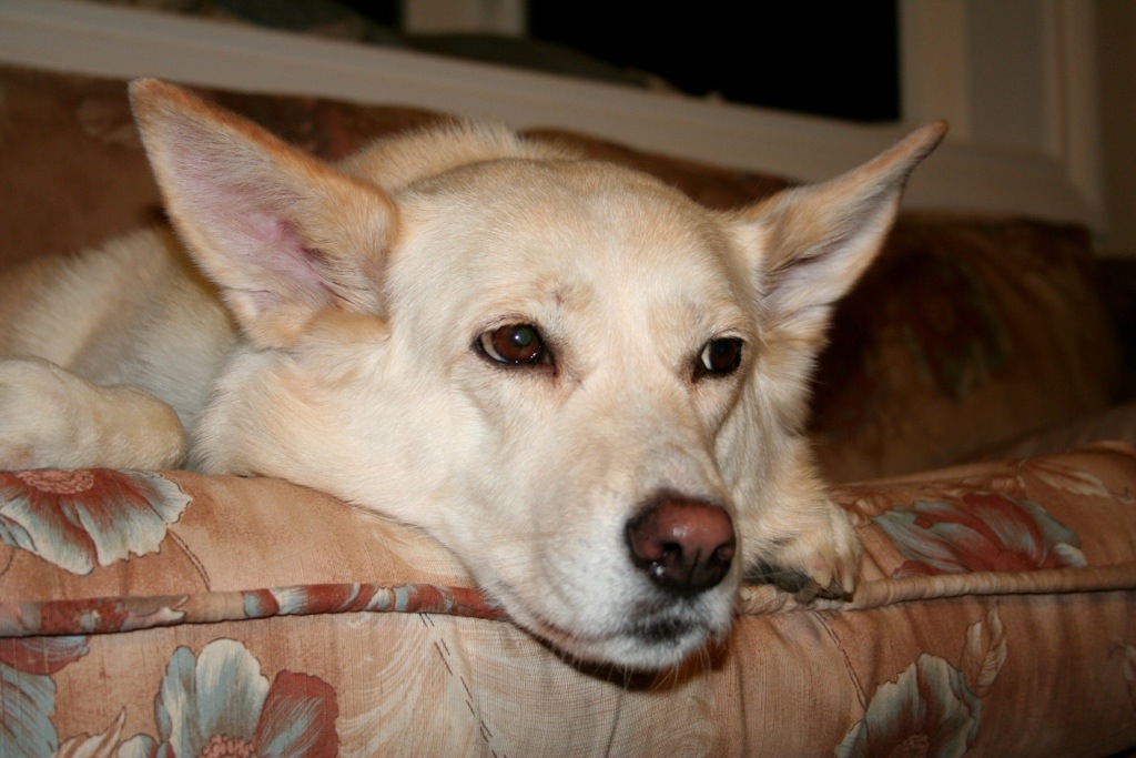 In the past she was always an “outdoors-during-the-day” dog since both Ronnie and I would be at work all day. Since I’ve been at home most days for a while, she’s now gotten very used to being in the house all day instead. She’ll lie on the couch or on the bed or under my desk, but the bottom line is that she’s gotten used to being a comfortable, “inside” dog all day long.
