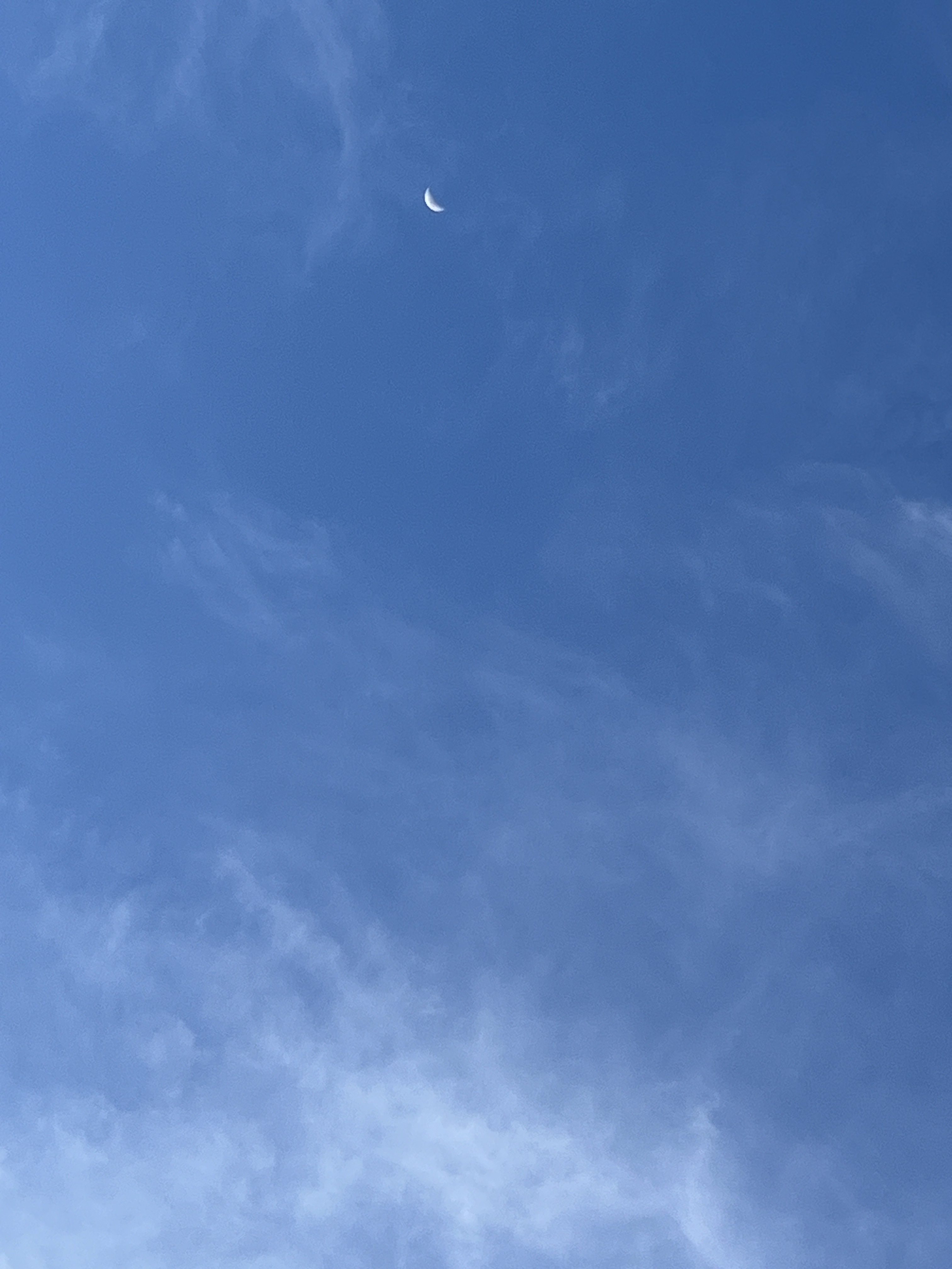Thank you! Here’s a picture of the three-day old moon and some high, thin clouds as a reward!