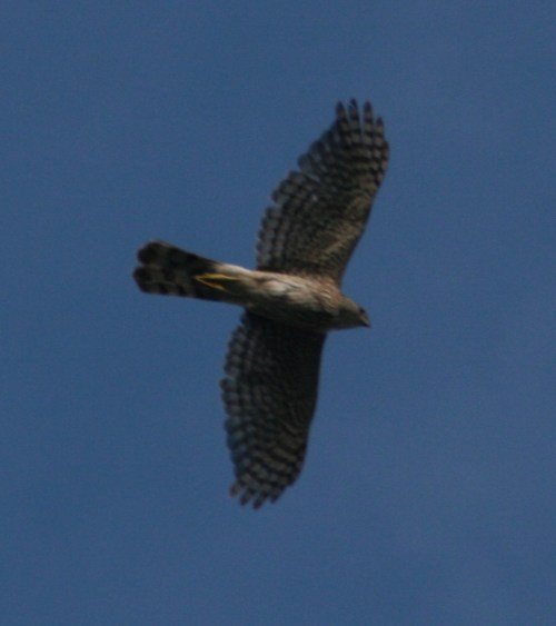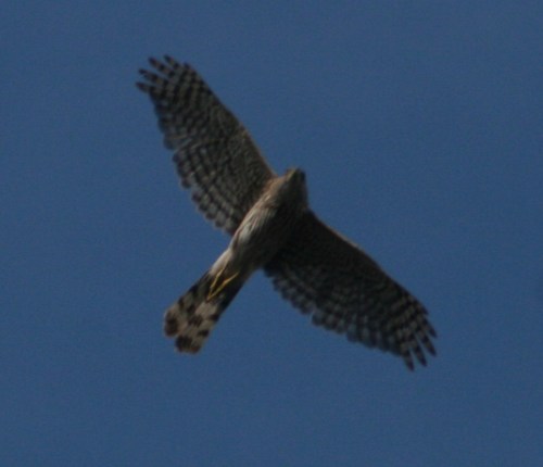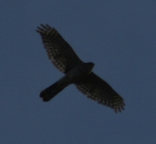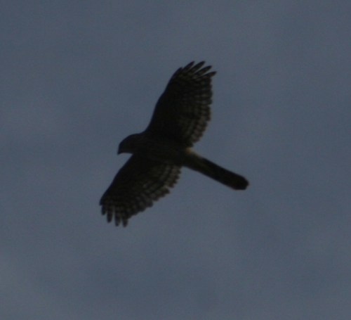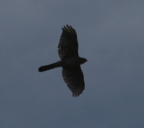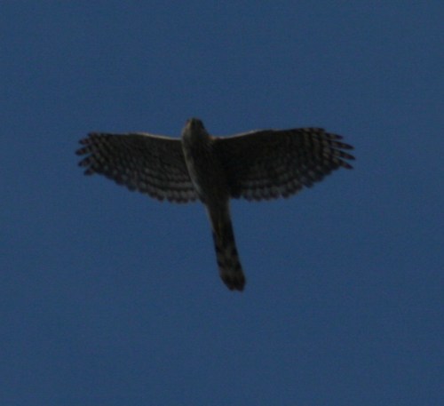 Poking around on the web I think it might be a Cooper’s hawk, but someone with more experience and knowledge than I will have to confirm that.