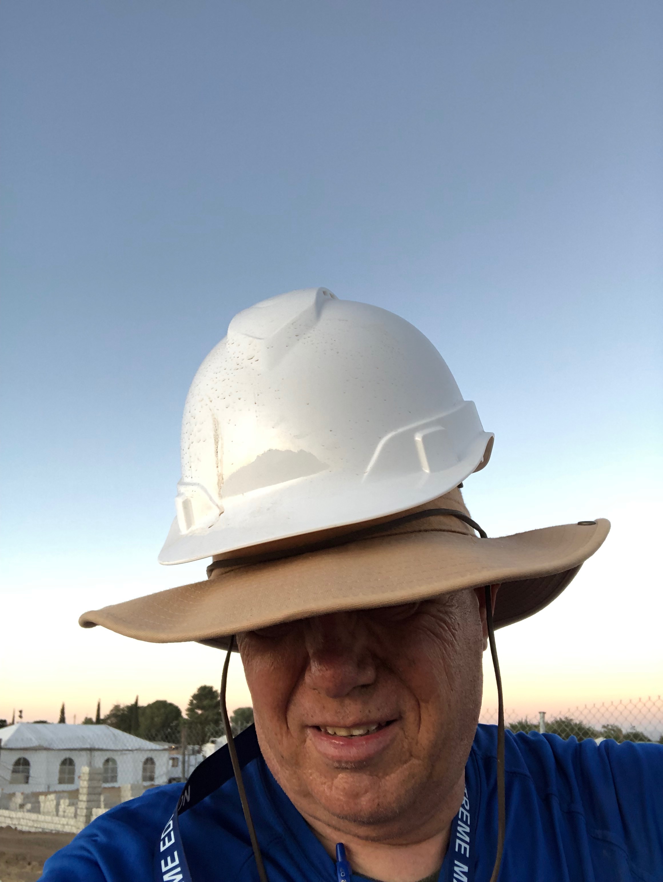 There are strict rules about wearing hard hats on site, with really good reasons. I like my melon intact and uncracked, so I wore one every day, no exceptions.