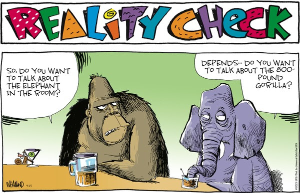 Recently, more and more I’ve referred to the “400-pound gorilla,” as in the legendary and proverbial “400-pound gorilla in the room” which everyone ignores feverishly and no one speaks of. As I have been too embarrassed, frightened, and nervous to speak of mine.