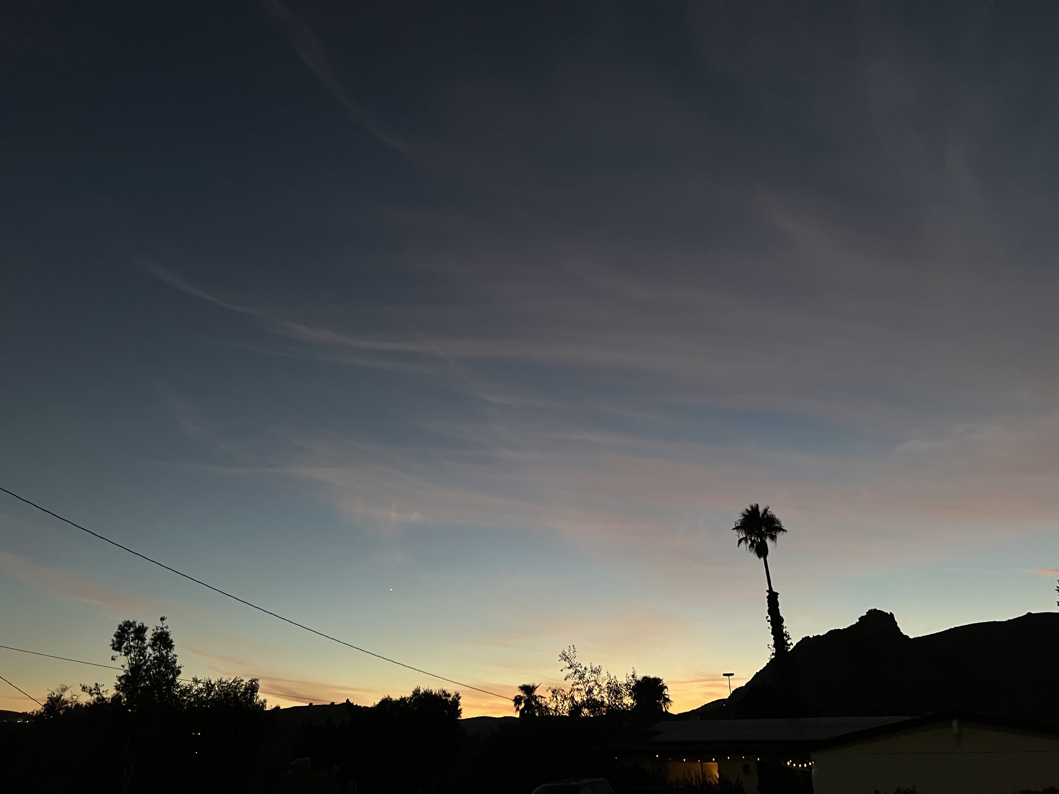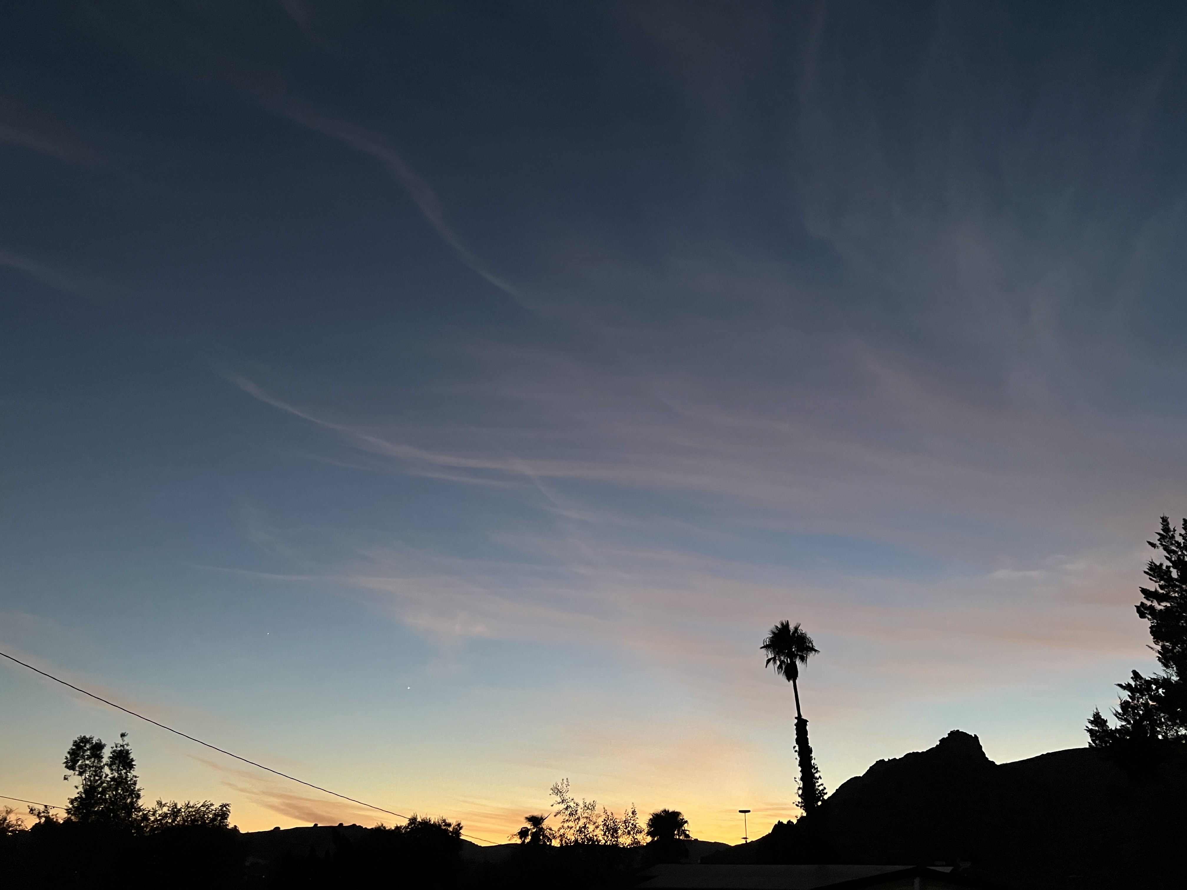 So I hustled down the hill a few houses to where I can peek a bit more around the side of Castle Peak. (The streak at the upper right is an airplane headed down the coast off of Ventura County toward LAX.)