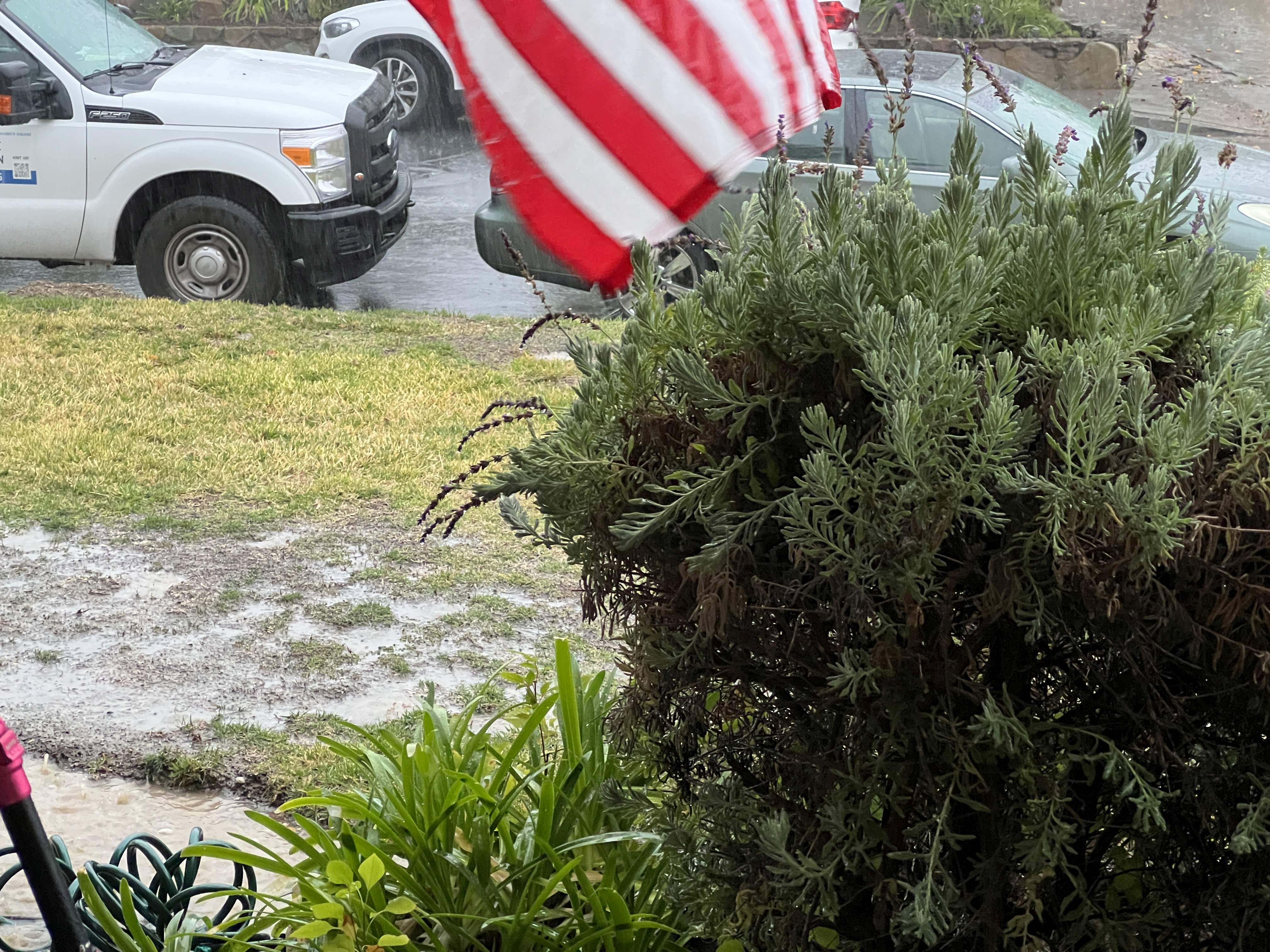 No problems here, but we’re at the top of a hill. If we start getting flooded, there’s a guy named Noah who gets to tell the rest of the story. Our biggest concern would be intersections and streets flooded out down below the hills, and we can avoid most of that by simply staying home.