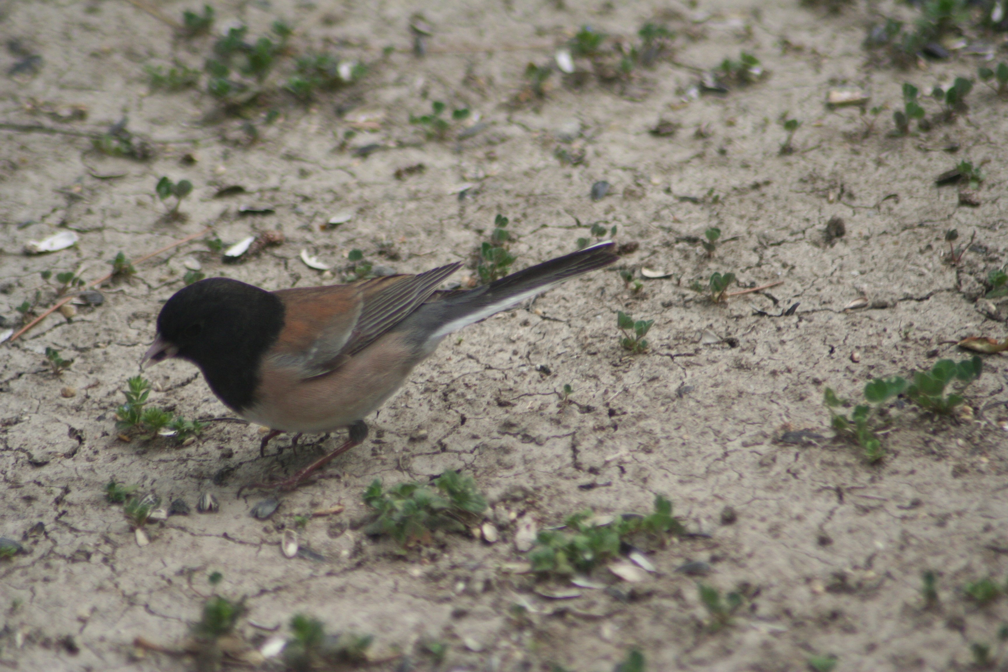 Maybe Solo Junco doesn’t marathon his little way to Saskatchawan and back every year because we keep dumping a cup or two of bird seeds out in the dirt every day.